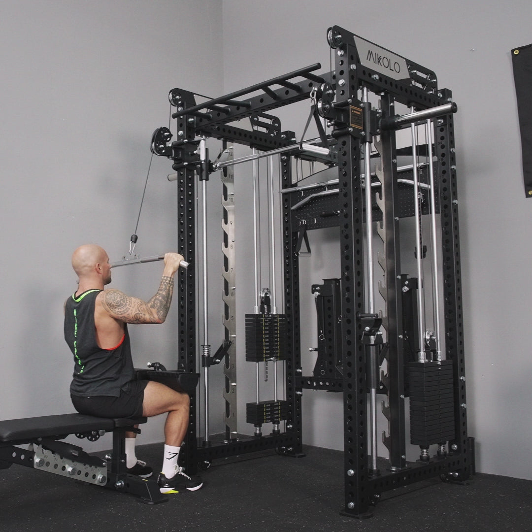 Both the front and sides of the uprights feature 1" holes with 2" spacing, ensuring compatibility with attachments from any brand. For even more options, customize with Mikolo 3x3 add-ons (sold separately) like the Lateral Raise, Leg Extension & Curl, and Chest Fly.