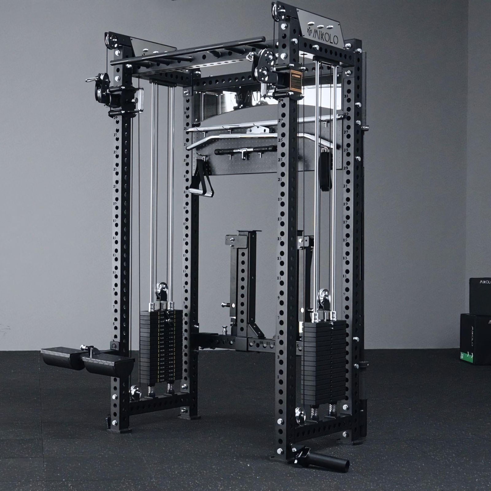 Both the front and sides of the uprights feature 1" holes with 2" spacing, ensuring compatibility with attachments from any brand. For even more options, customize with Mikolo 3x3 add-ons (sold separately) like the Lateral Raise, Leg Extension & Curl, and Chest Fly.