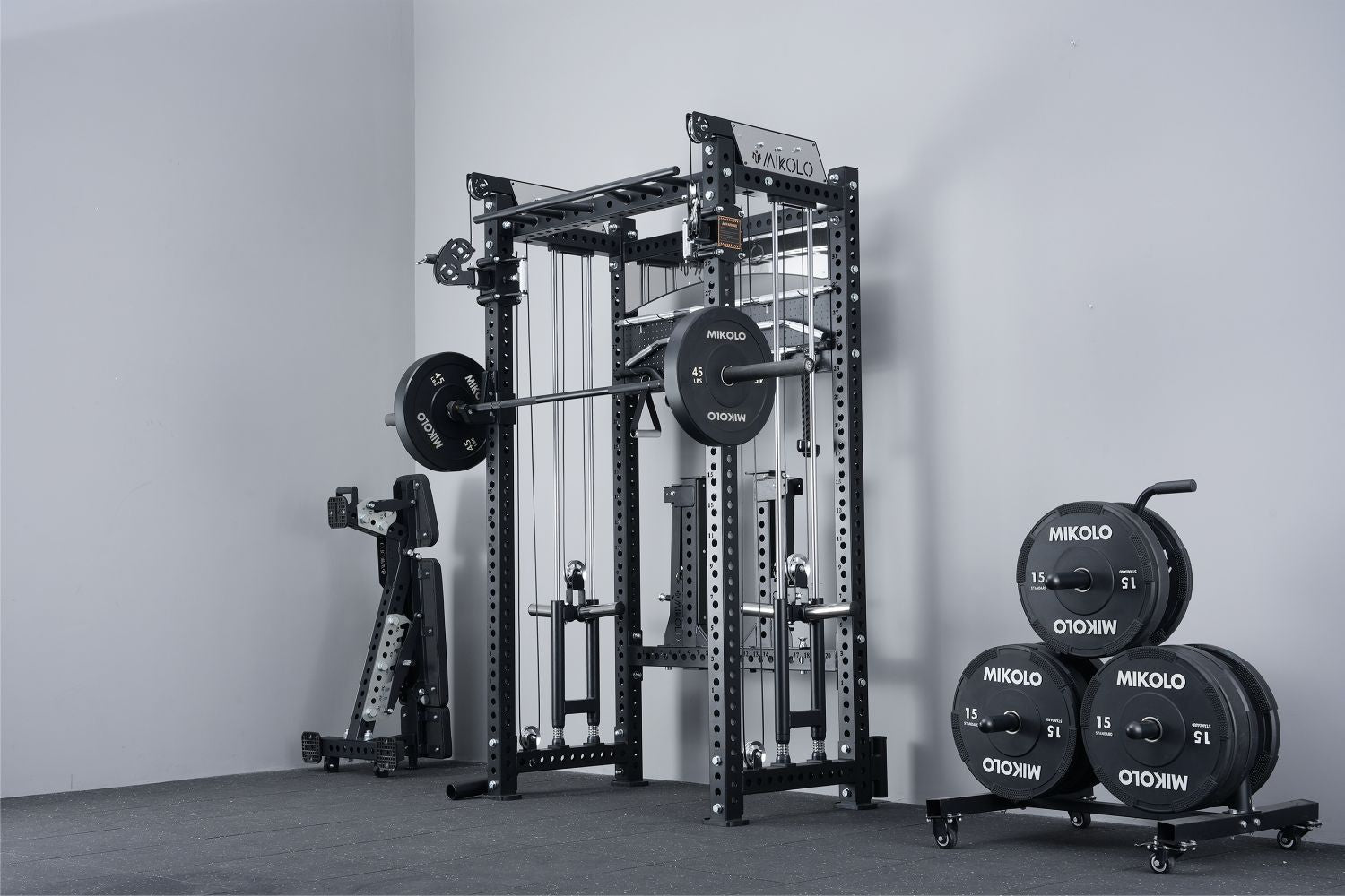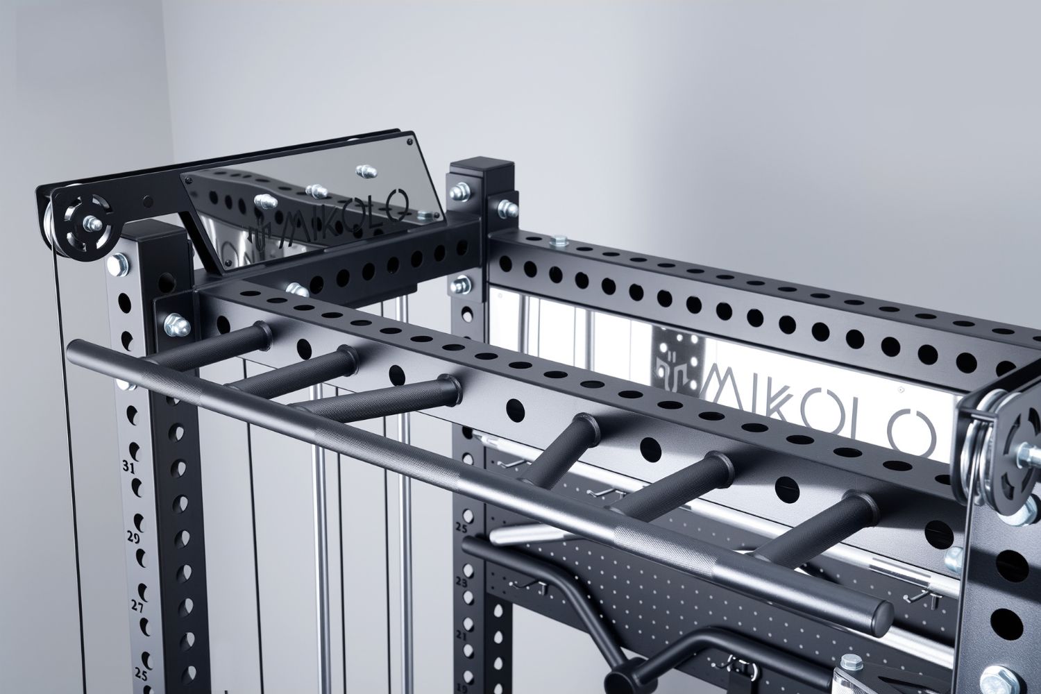 Both the front and sides of the uprights feature 1" holes with 2" spacing, ensuring compatibility with attachments from any brand. For even more options, customize with Mikolo 3x3 add-ons (sold separately) like the Lateral Raise, Leg Extension & Curl, and Chest Fly.