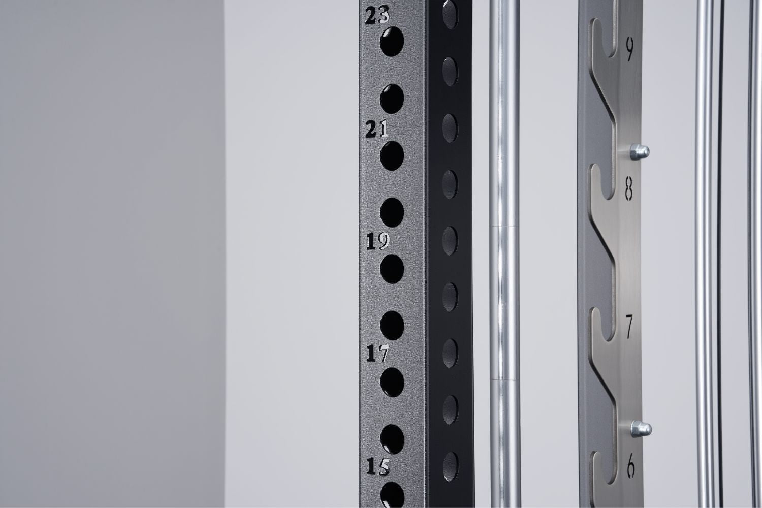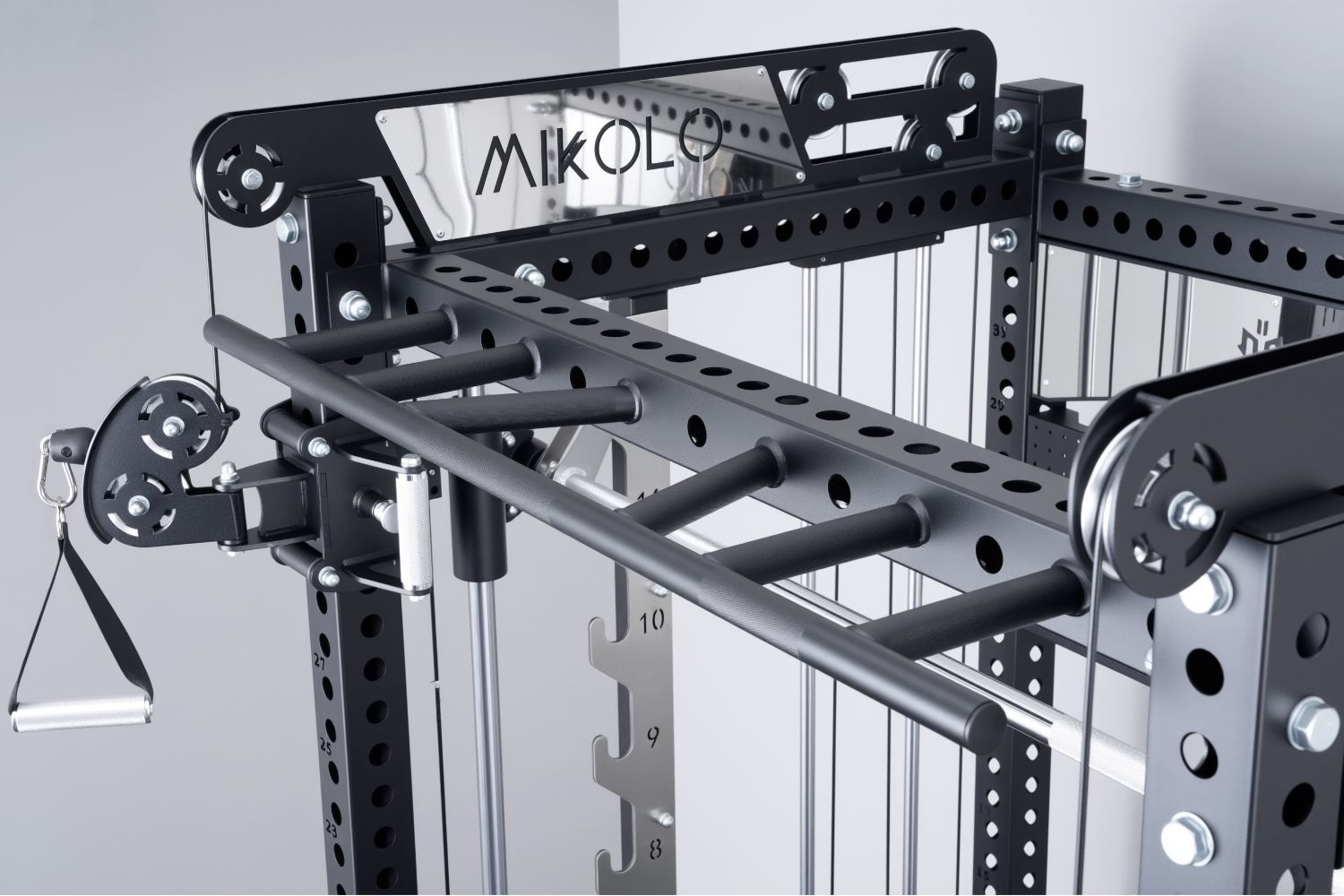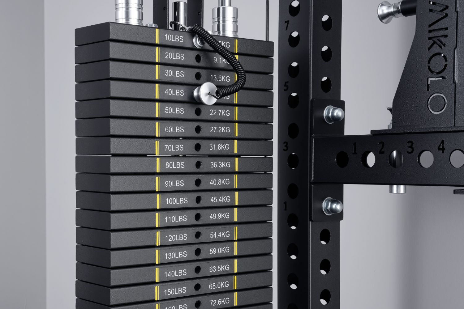 Both the front and sides of the uprights feature 1" holes with 2" spacing, ensuring compatibility with attachments from any brand. For even more options, customize with Mikolo 3x3 add-ons (sold separately) like the Lateral Raise, Leg Extension & Curl, and Chest Fly.