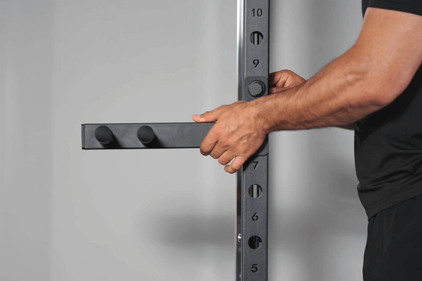 Featuring reinforced screw-in wall mounts, this wall-mounted squat rack is built to handle up to 1000 lbs with ease, ensuring your safety during the most intense workouts.