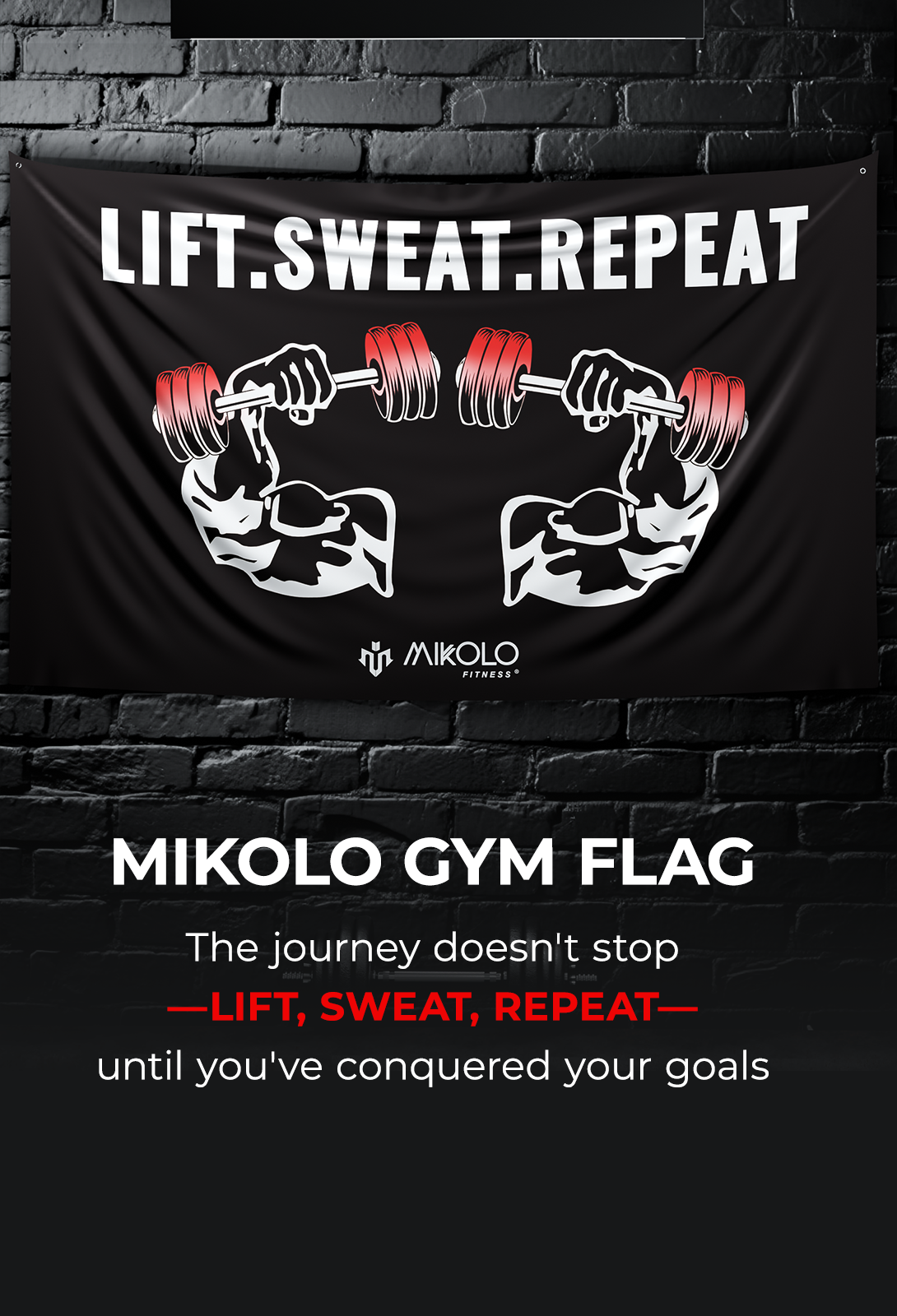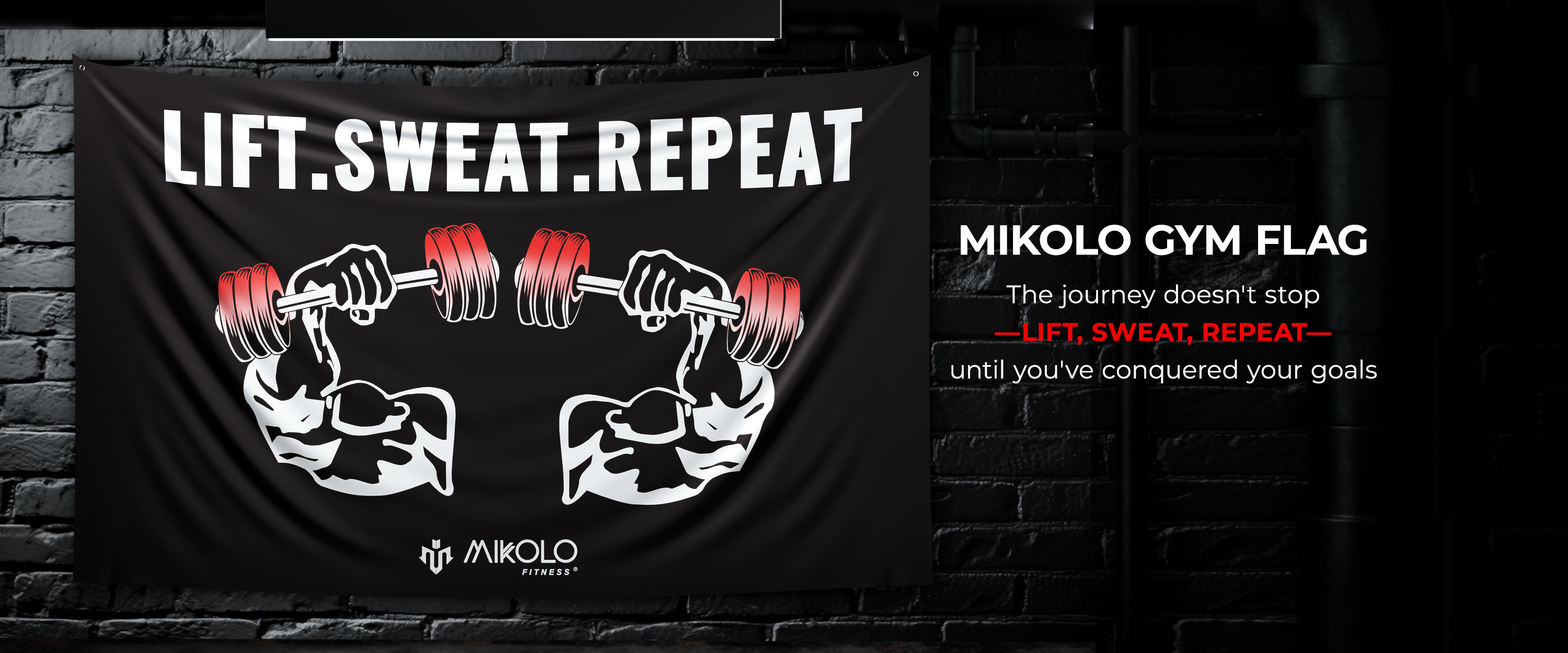 The Mikolo Gym Flag adds bold motivation to your home gym, standing out above your equipment and keeping “LIFT, SWEAT, REPEAT” in view during every workout.