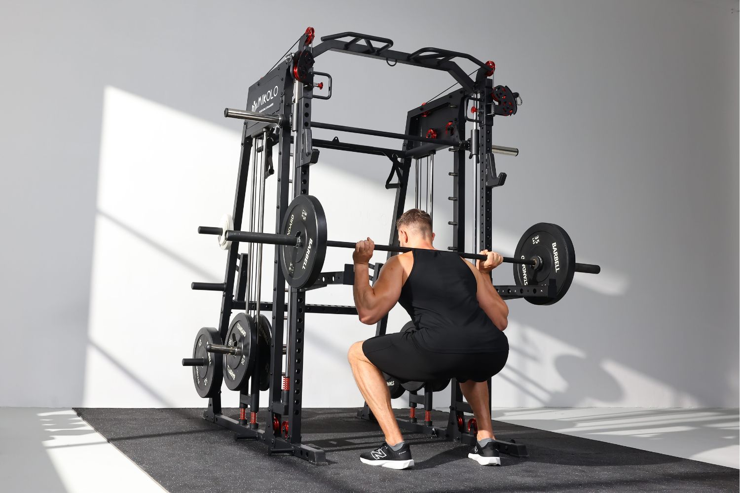 This upgraded design stores the Smith bar at its highest position within the frame, completely clearing your training area. Never duck around the bar again during pull-ups, dips, or free-weight exercises. Enjoy unimpeded movement and seamless station transitions, maximizing both your space and workout efficiency.