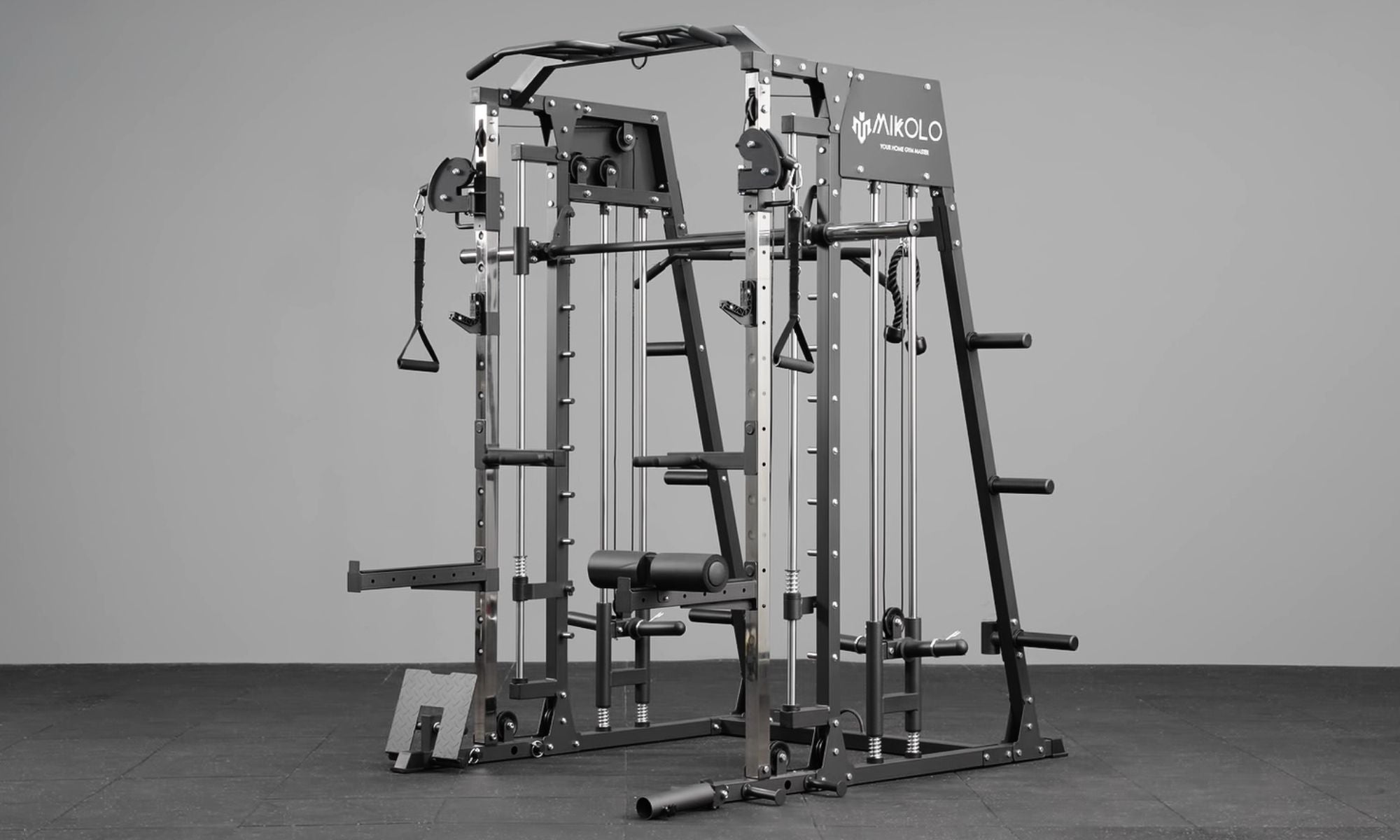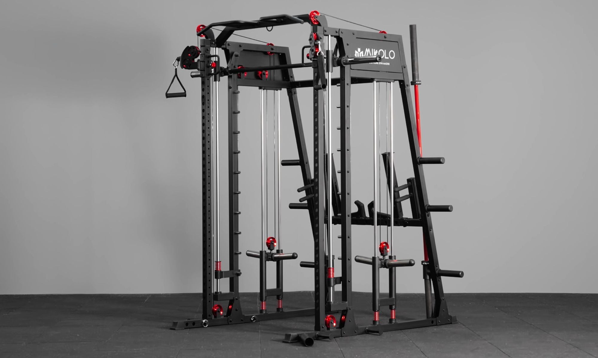 - Unmatched Safety – 2200lb capacity with 20'' spotters, commercial-grade J-cups, and top-position Smith bar storage—ensuring fearless lifts and free, unobstructed movement.