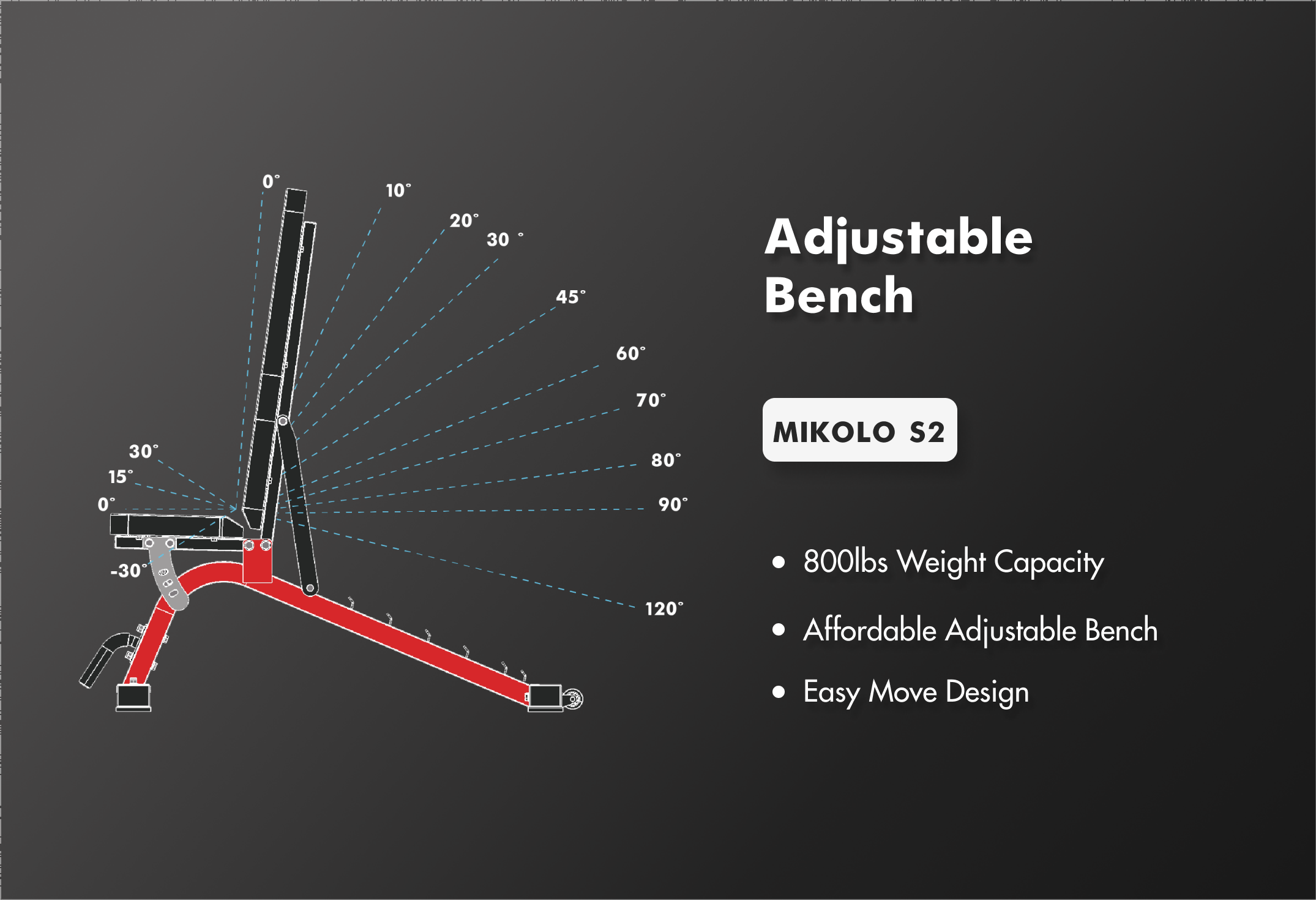 - Triangular support structure which gives this bench a 800 lbs weight capacity.