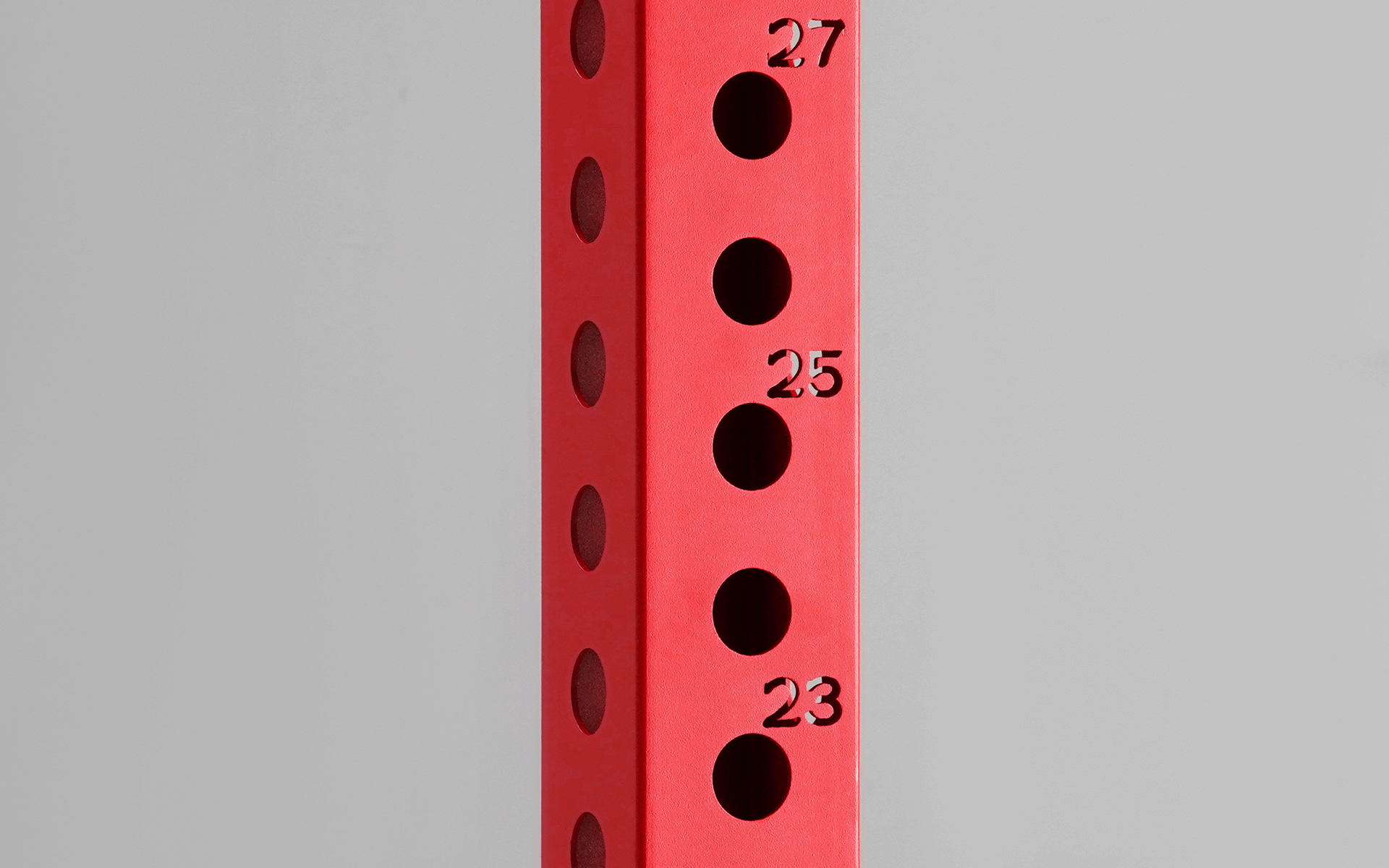Laser-cut numbers on every hole ensure precise alignment of attachments, making setup quick and accurate. With 2-inch hole spacing across the uprights, you can dial in the perfect position for your gear. This spacing provides fine-tuned adjustability, allowing you to optimize your setup for any lift. The 2-inch spacing is about as close as we can get for maximum flexibility and precision.